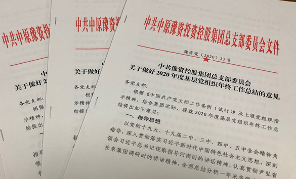 中共豫資控股集團總支部委員會 印發2020年度基層黨組織年終工作總結意見 2020.12.14
